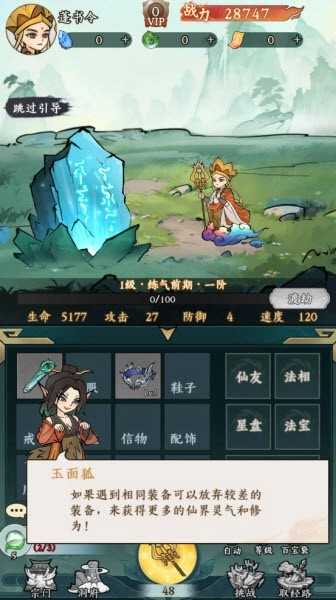 5、如果遇到相同装备可以放弃较差的装备,来获得更多的仙界灵气和修为。