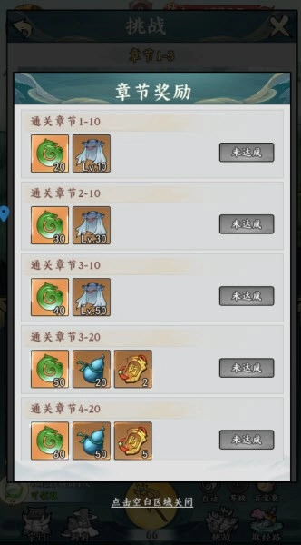 5、每个大章节挑战完成之后可以领取章节奖励。