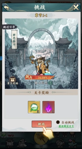 2、点击后可以看到当前挑战到的章节,点击挑战。