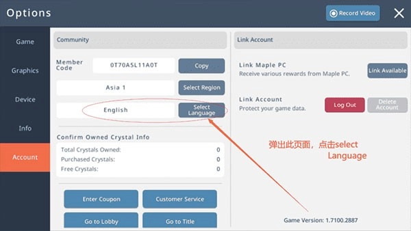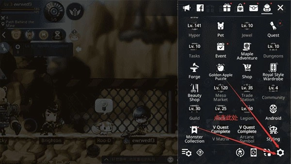 1. 开启冒险岛M国际服,待进入游戏后,点击右上角带有感叹号的橙色图标。