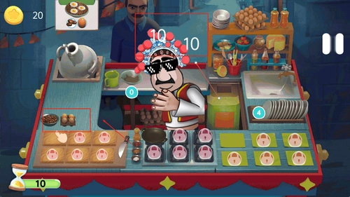 3、卡通画面风格清新可爱,带来的整体视觉体验轻松舒适,有助于玩家清晰准确地识别各类食材与配料,防止因混淆而对制作效率和服务质量产生不良影响。