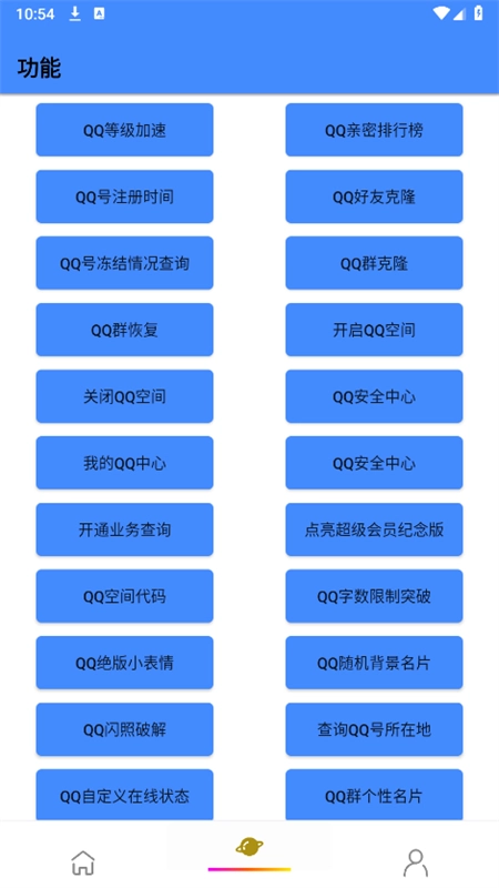 QQ工具箱是一款功能多样的综合性工具箱软件,整合了QQ与微信的众多实用工具,像QQ等级加速、QQ自定义在线状态设定、QQ好友恢复、QQ好友克隆等,各类功能完备,能满足不同用户的需求,而且所有功能都可免费使用。