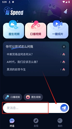 1、进入对话页面,直接输入问题发送即可快速获取回答。