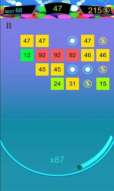 2. 轻点屏幕即可调整射击角度,以此掌控弹球撞击砖块的具体落点,借助弹球的反弹效应,连续击破多个目标,进而获取积分。