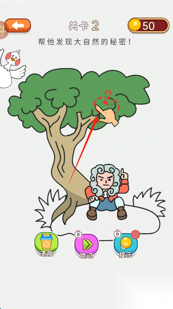 2、关卡2按指引点击树的指定位置,触发自然秘密相关剧情,推进关卡进度。