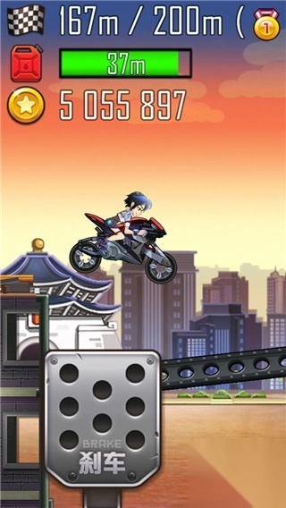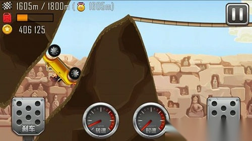 这款游戏的操作极其简单,简单到甚至无需新手教程。在屏幕下方的左右两边,分别设有刹车和油门按键。只需点击油门按键,游戏角色就能加速前行,而刹车按键则会在下坡路段速度失控时发挥作用。