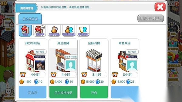7. 开设路边摊,可以定时的获取金币和经验奖励