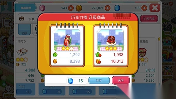 8. 强化商品,可以提升便利店营业额,获得更多的金币