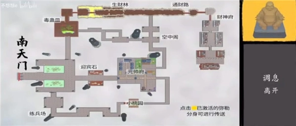 6、靠近地图中的金身佛像,可以调息休息,并查看整个天庭地图,避免迷路。