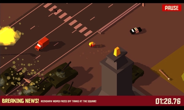 1、街机风格的快节奏玩法,3分钟一局的设定适合碎片时间。没有复杂菜单,点击即玩,死亡后立即重生继续挑战。