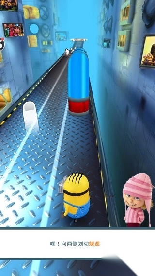 4、另外,在“小黄人赛跑”模式中,撞到障碍物也不会 GAME OVER,但会大幅减速,让你落后其他小黄人,千万要注意哦!只有夺得“小黄人赛跑”的终极宝座,才能成为史上最邪恶的坏蛋!你准备好了吗?