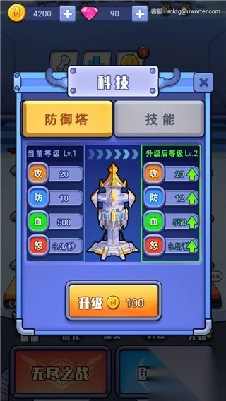 3、炮塔的动力需要升级才能升级,以提高动力和射击速度。
