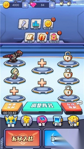 游戏里,玩家除了能雇佣各类英雄抵挡入侵,还可通过签到、雇佣、兑换等方式获得或解锁高等级英雄,对其培养完成进化,快速提升动力和战斗速度,共同战胜异界怪物。