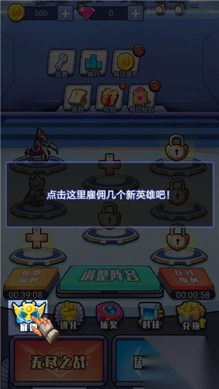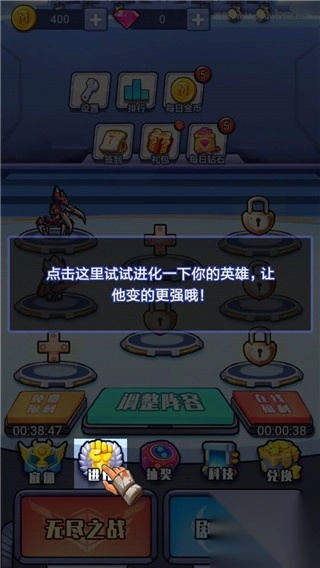 2、再点击这里试试进化一下你的英雄,让他变的更强哦!