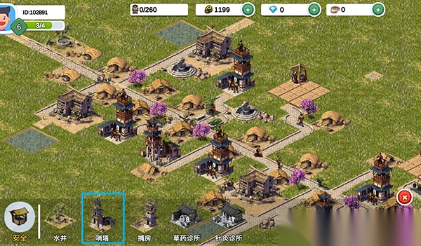 3、有时候城中会发生火灾,需要在安全里修建一些哨塔实时监测城中大小事,以便及时处理,同样哨塔也要覆盖所有住宅。