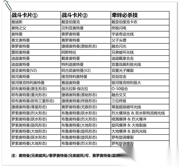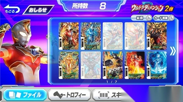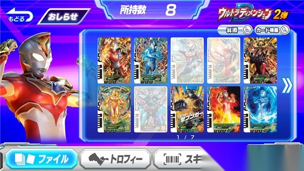 《奥特曼融合激战》这款游戏,是以卡片战斗的形式,将历代奥特曼系列中的奥特曼、怪兽以及宇宙人融入其中。其主题围绕奥特曼保卫地球、与怪兽展开作战。游戏玩法十分简单,玩家先对收集到的卡片进行扫描,然后录入奥特档案。如此一来,战斗时就能体验每个角色的必杀技。不仅如此,奥特曼之间还能组合释放合体技能,而技能威力取决于奥特战士自身属性。通常,原本就实力强劲的奥特曼,合体后可释放出威力更为强大的技能。所以,若想更轻松地战胜怪兽获取胜利,尽可能多地收集奥特曼卡片至关重要!