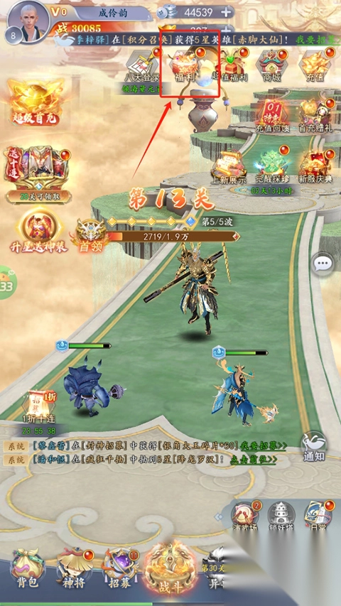1、进入游戏主页,点击福利