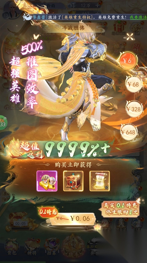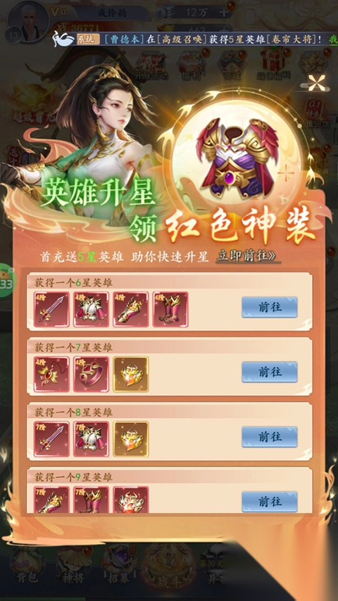 游戏一开场就直接赠送神将,上千次抽奖让你根本停不下来,各种强力阵容随你自由搭配。除此之外,还有通关就送高阶装备的福利,以及升战力集将助力活动,让你的战力一路飙升。