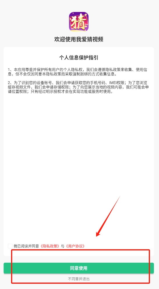 1、点击同意使用按钮,勾选同意隐私政策才能进入游戏。
