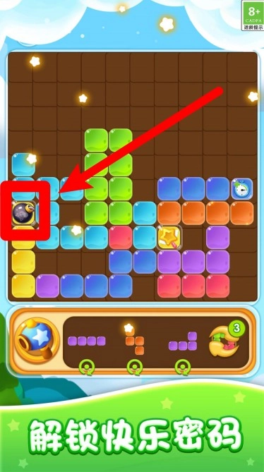 1.点击左侧炸弹图标可精准引爆方块,迅速清除指定区域内的障碍物。
