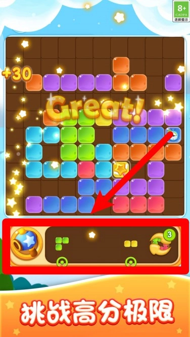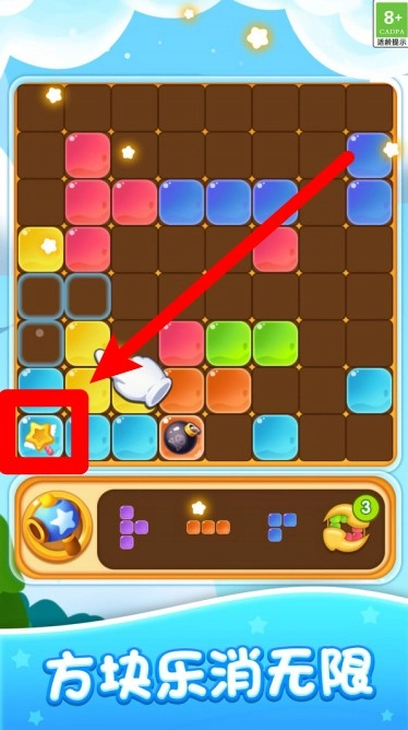 2.使用左下角的星星道具可清除任意位置图块,帮助你扭转局势取得先机。