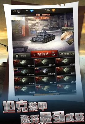 4、开启全新冒险,踏入新地图,展开别样的军事战斗。在这里,你可以挑选心仪的坦克,还能对其进行升级。