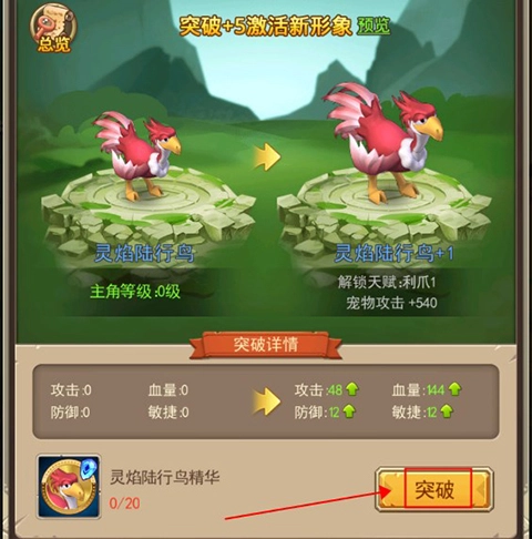 5、还可以使用宠物精华对宠物进行突破进阶,大幅增加属性,提升战力。