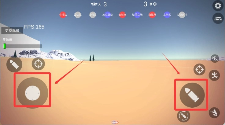 4、开始游戏后滑动左侧摇杆即可移动角色,点击右侧按键可以射击。
