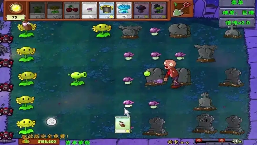 3、在塔防机制的架构之上,玩家要借助各类蕴含资本主义讽刺意味的植物单位,凭借精心的资源管理与战术安排,以此抵御僵尸的来袭。