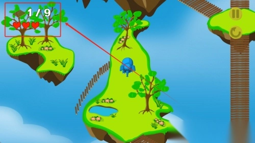 3、于状态栏处查看剩余生命值以及当前关卡进度,从而把控实时游戏状况。