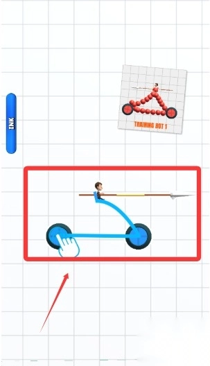 1、绘制环节,玩家进入编辑界面后,用手指在画布上涂抹墨水,勾勒车轮、车架、武器等部位,完成创意战车设计。