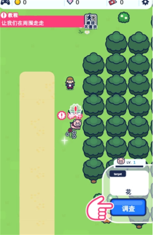 3、通过滑动屏幕的方式可以控制小猪移动,跟随地图上的指引去调查附近的道具,这点的体感游戏流程非常的新颖;