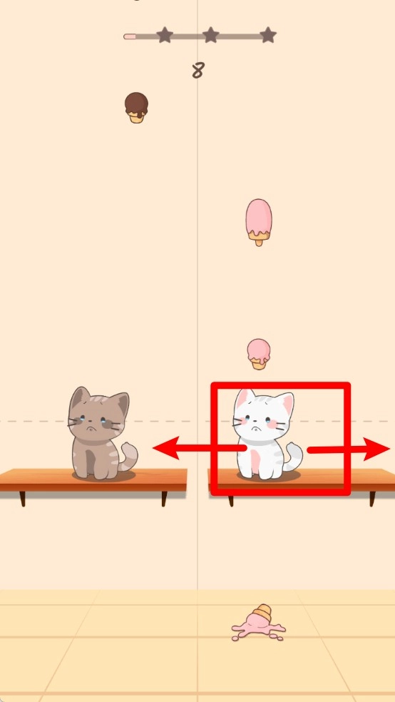 3. 猫咪能够执行左右移动的操作,玩家得依据节奏快速调整自身站位,防止食物落到地面,只有精准把握时机,才不容易丢分。