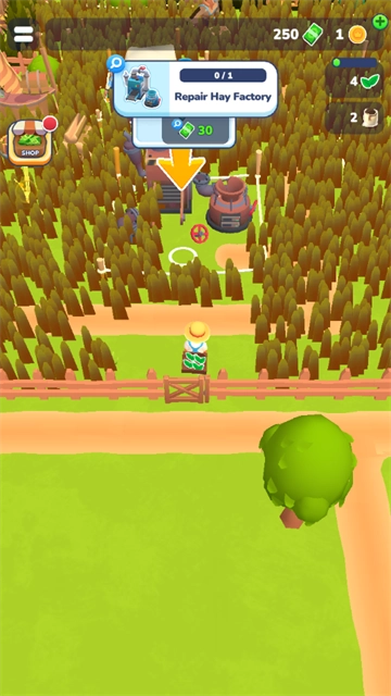 2,手指在屏幕上滑动可以控制人物移动,移动到箭头位置使用钞票建造小麦加工机器
