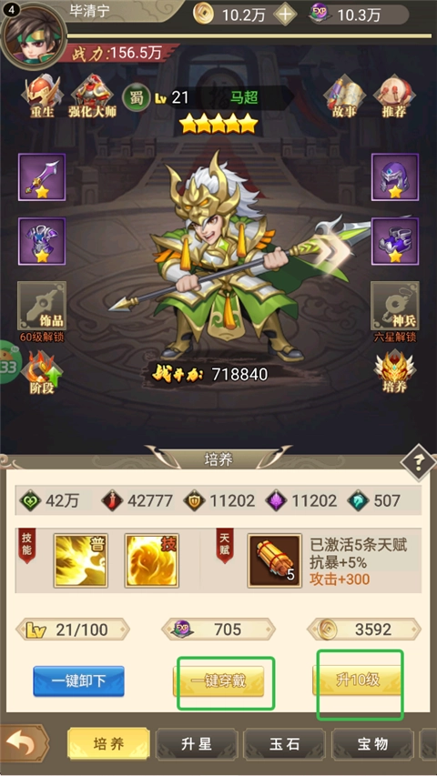 3、随着关卡的深入,玩家需要为武将升级、穿戴装备。