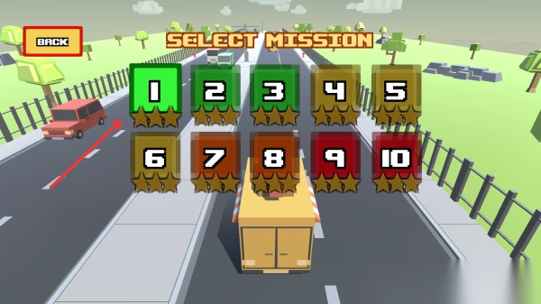 2、在【SELECT MISSION】页选带星号关卡(如1-10关),开始对应配送任务。