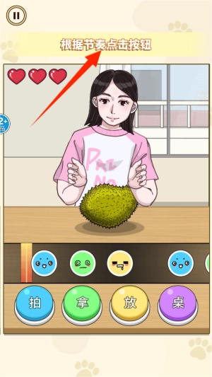 3、在屏幕下方,依次排列着“拍”“拿”“放”“桌”这四个触控键,用户需要按照表情符号的节奏,完成与之对应的动作。
