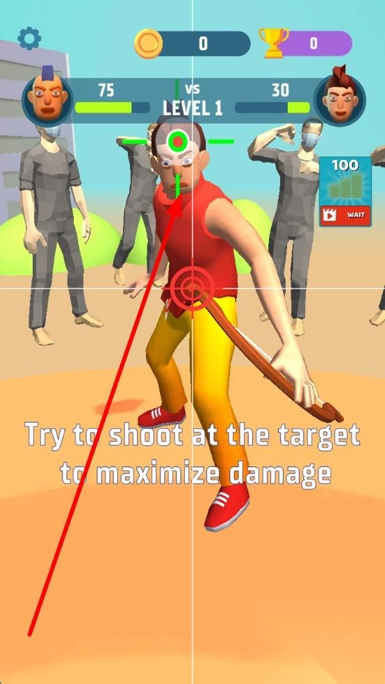 1、精准射击:聚焦靶心闯关,通过调整角度避开障碍物,利用箭矢穿透力同时命中多个目标,追求满分评价。