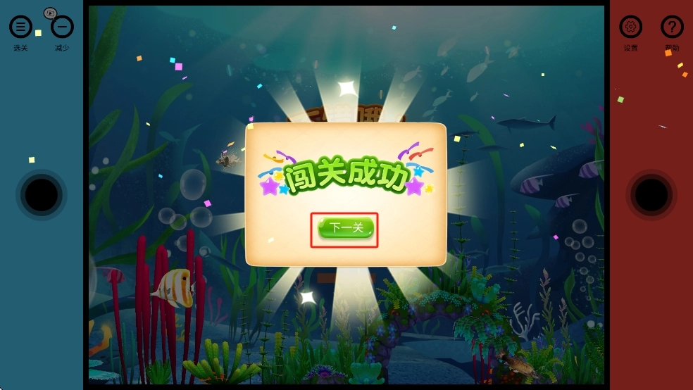 3、闯关成功后即可解锁更多其他关卡,点击绿色的下一关按钮,进入后续水下套环关卡。