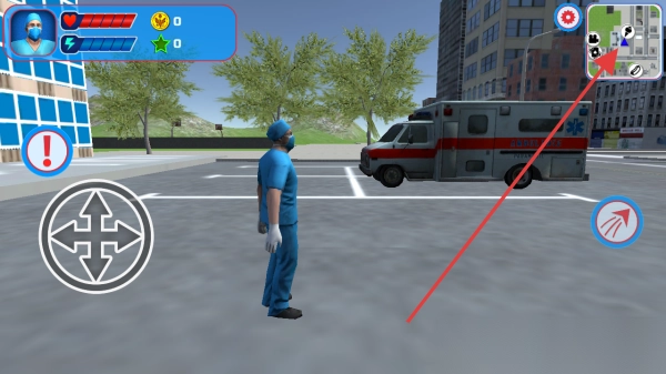 2、靠近救护车,点击右侧操作按钮,驾驶救护车,执行救援任务。
