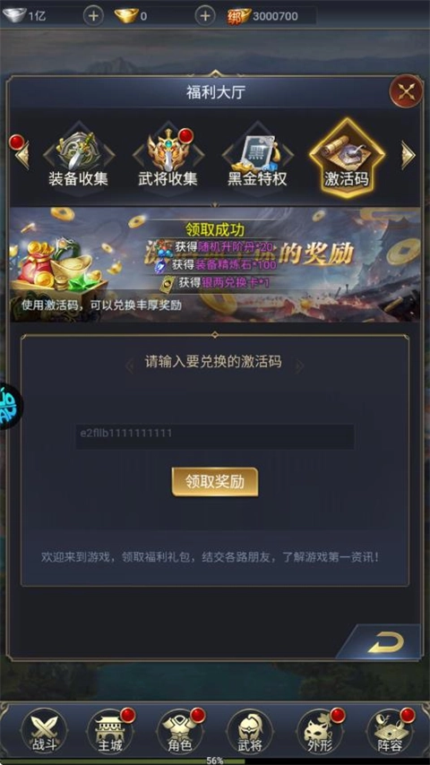 2、福利大厅-激活码