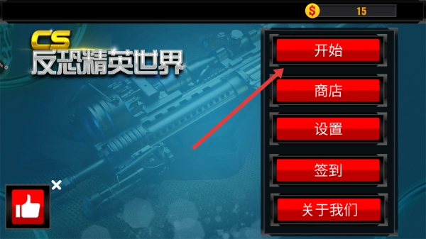 1. 在《CS反恐精英》的世界主界面,只需点击“开始”按钮,就能进入关卡选择页面,开启射击冒险之旅。