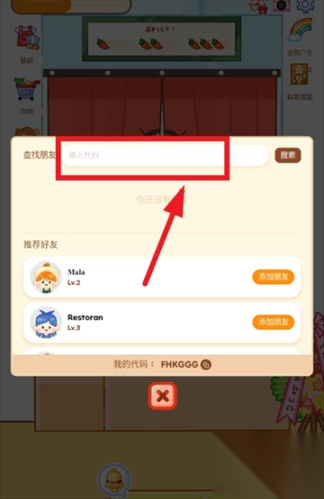 输入朋友代码查找朋友