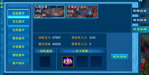 在此处,存在经验副本、宝石副本、仙宠副本、橙装副本、时装副本、铜钱副本以及真气副本。快叫上自己的小伙伴一同踏上探宝之旅吧!