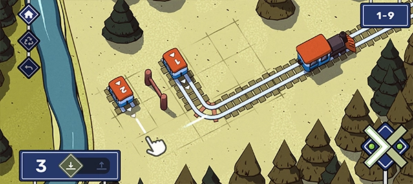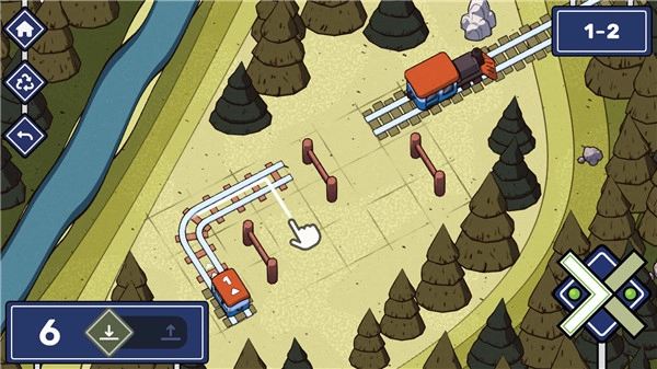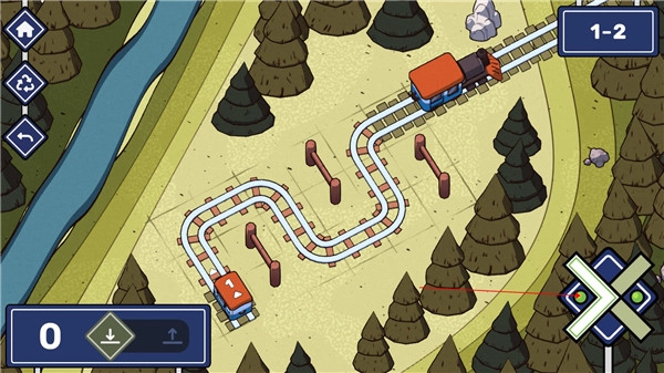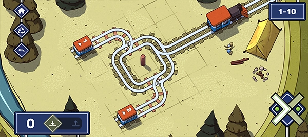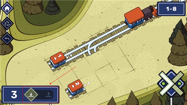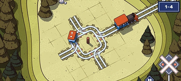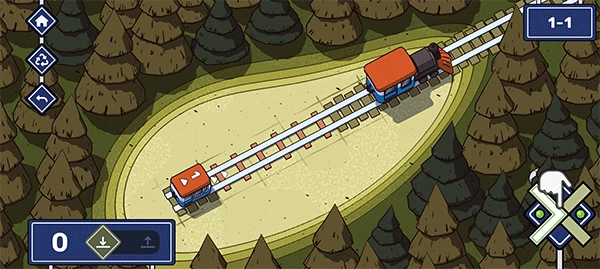 在这一关中,左右两侧各有一节火车。第一步,我们得弄清楚这两节火车的先后顺序;紧接着,要铺设出两条铁轨。这里需要特别注意,要防止两节火车同时抵达而发生相撞的情况。对于第二条铁轨,可以设计成在第一条铁轨的线路上环绕一圈,如此一来,这个难题就能圆满解决了。