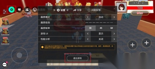 -通过左上角设置按钮退出地图、切换画质帧率或调整其他参数。