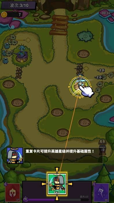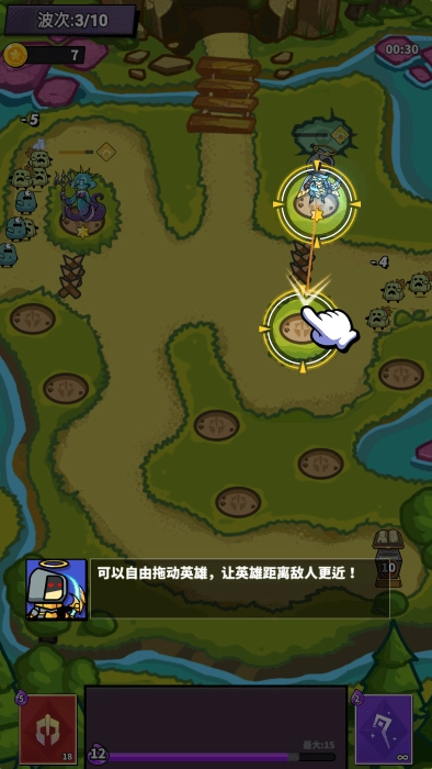 当另一侧也刷出怪物时,我们就得刷新英雄卡牌,然后直接把它拖到上方的位置。