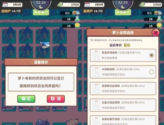 5、合同:玩家能够与客户签订供货合同,提高牧场的收益。