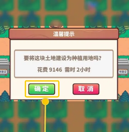 4、紧接着会弹出一个提示窗口,窗口询问是否确认把该地块用于种植,点击【确定】就行。