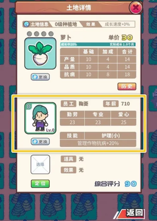 2、在游戏画面中,点击你想要安排员工的那块土地,打开详情页面。